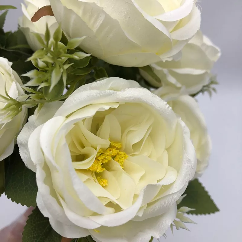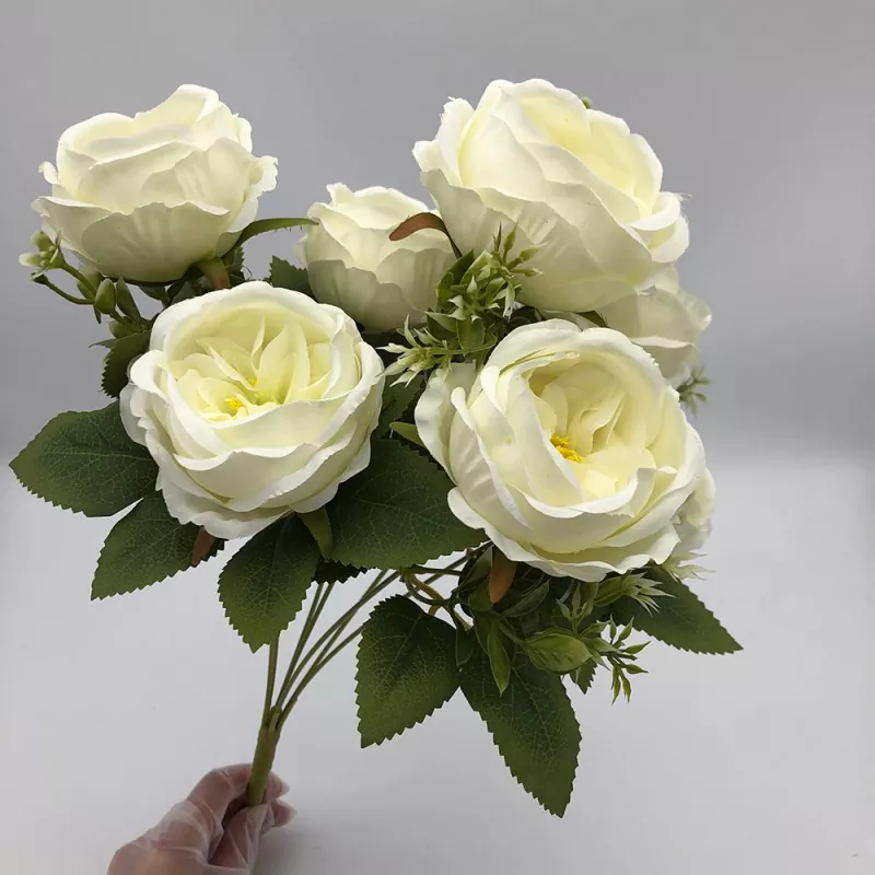Ние Оулиќ сме посветени на истражувањето и развојот и прилагодувањето на висококвалитетните симулирани растенија и цветната уметност на свадбената декорација. Овој вештачки букет од Остин Роуз е изработен од свила + еколошки пластични материјали, со свиткани жични гранки, 7 цветни глави цветаат слој по слој, мека и нежна боја, дијаметар на цвет до 3,5 инчи (8-9 см), навистина го обновуваат уникатниот елегантен слоеви на Остин Роуз и е неодредена класична цветна форма за создавање романтичен простор.