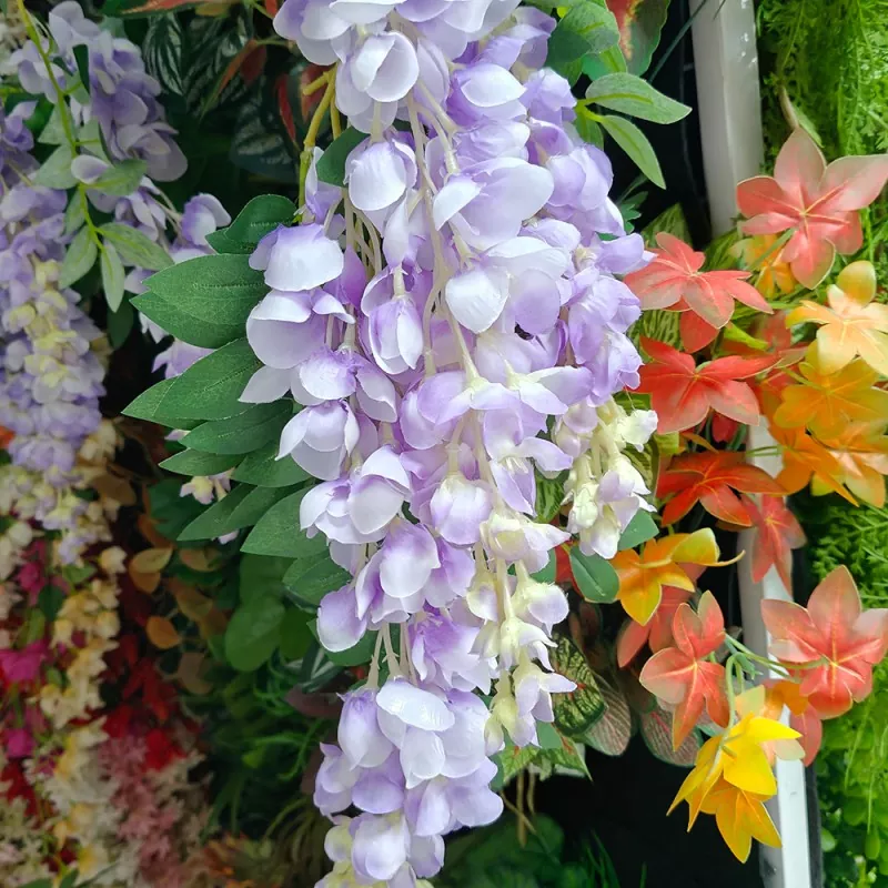 На Ouli®, ние нудиме најразлични лажни вистерија лози погодни за употреба на отворено. Овие вештачки винова лоза имаат различни должини, бои, густина на цвет и материјали, кои можат да се користат во најразлични сценарија и потреби за примена.